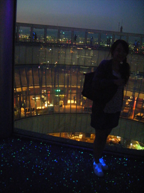 展望台的地面有一種特殊材質 會讓地面成螢光效果 可能想創造出一種螢光星空的感覺吧